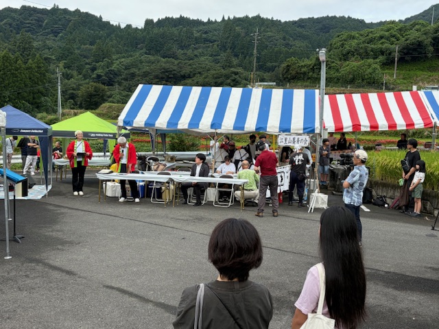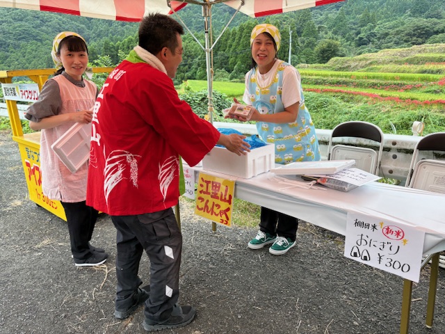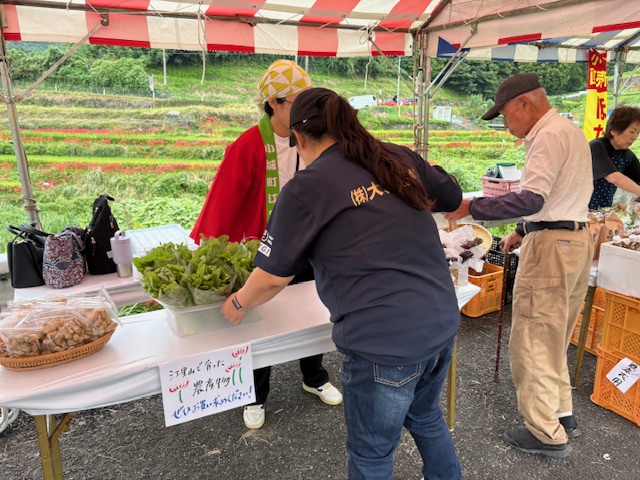 今年収穫された新米を使ってのおにぎりや手作りこんにゃく、地元産の新鮮なお野菜等たくさんの農産物が並びました。心配した雨もなんとか降らず、気温の方もだいぶ暑さが和らぎ、去年に比べると過ごしやすい絶好のお祭り日和!おかげで彼岸花もこのお祭りに合わせて花を満開に咲かせてくれました!気温が下がる事で花が咲く彼岸花ですので、近年続く異常な暑さがこれから先どう影響してくるのか本当に気がかりです。