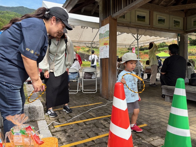 さて、弊社は今年もブースをお借りし、「写真プリントのオリジナルうちわの配付」と初めての試みですが「お子様輪投げ」を企画し実施しました。お子様輪投げは挑戦回数制限なしで、成功するとお菓子の詰め合わせをプレゼント!! みんなあきらめずに何度も挑戦していて、見ているこちら側も親御さんと一緒になって思わず応援に力が入りました!