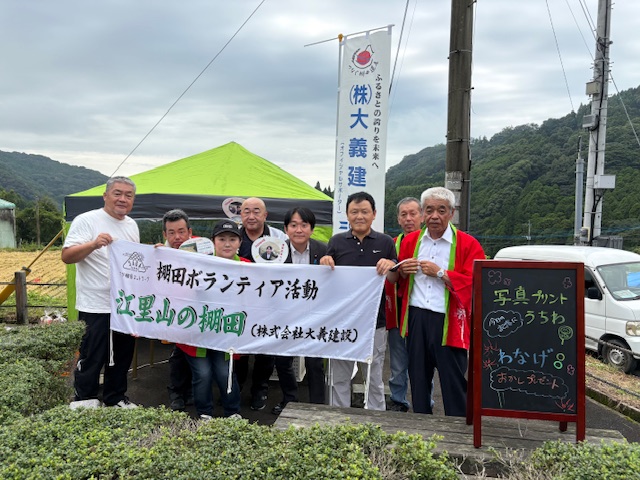 令和7年9月23日、小城市江里山の棚田で毎年秋恒例の『江里山ひがん花まつり』が行われました。今年で当社のボランティア活動も4年目となり、私たちにとっても地元の方やイベントへ足を運んできてくださる方々との交流を持てる大事な行事となっています。